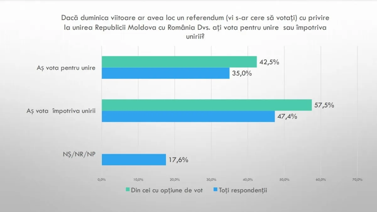 Totuși, 57,5% dintre respondenți sunt împotriva unirii.