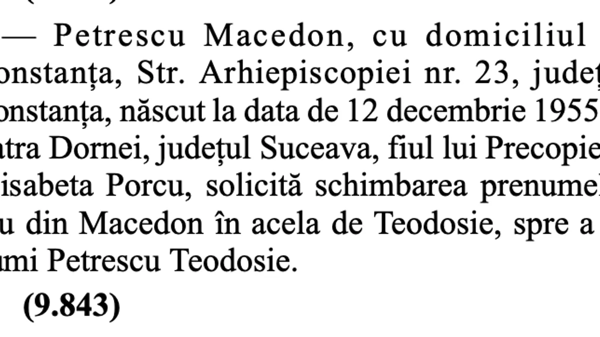 Teodosie Petrescu s-a născut Macedon Porcu (sursa: Monitorul Oficial)