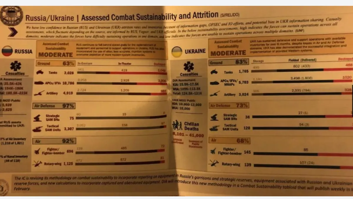 Un alt document dezvoltă detaliile privind echipamentele livrate Ucrainei la timp „pentru contraofensiva de primăvară" (în documentul anterior se spune „ofensivă"). Ofensiva va fi întreprinsă de Corpul 10 operațional al Ucrainei și va fi alcătuită din cele nouă brigăzi care sunt reechipate de către forțele americane și aliate, cu trei brigăzi suplimentare "complet aprovizionate de Ucraina", adică echipate prin reconstituire și canibalizarea altor unități.