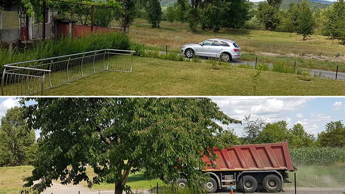 Cosmin Săteanu, cetățeanul bătut și încătușat de polițiști, a sesizat de mai multe ori primăria din Aușeu în legătură cu basculantele de 40 de tone care transportă pietriș, distrug drumul și afectează, prin trepidații, structura de rezistență a caselor. Săteanu are 50 de ani, a lucrat în SUA și s-a întors recent în România. El a renovat casa părintească din Cacuciu vechi și s-a stabilit aici.