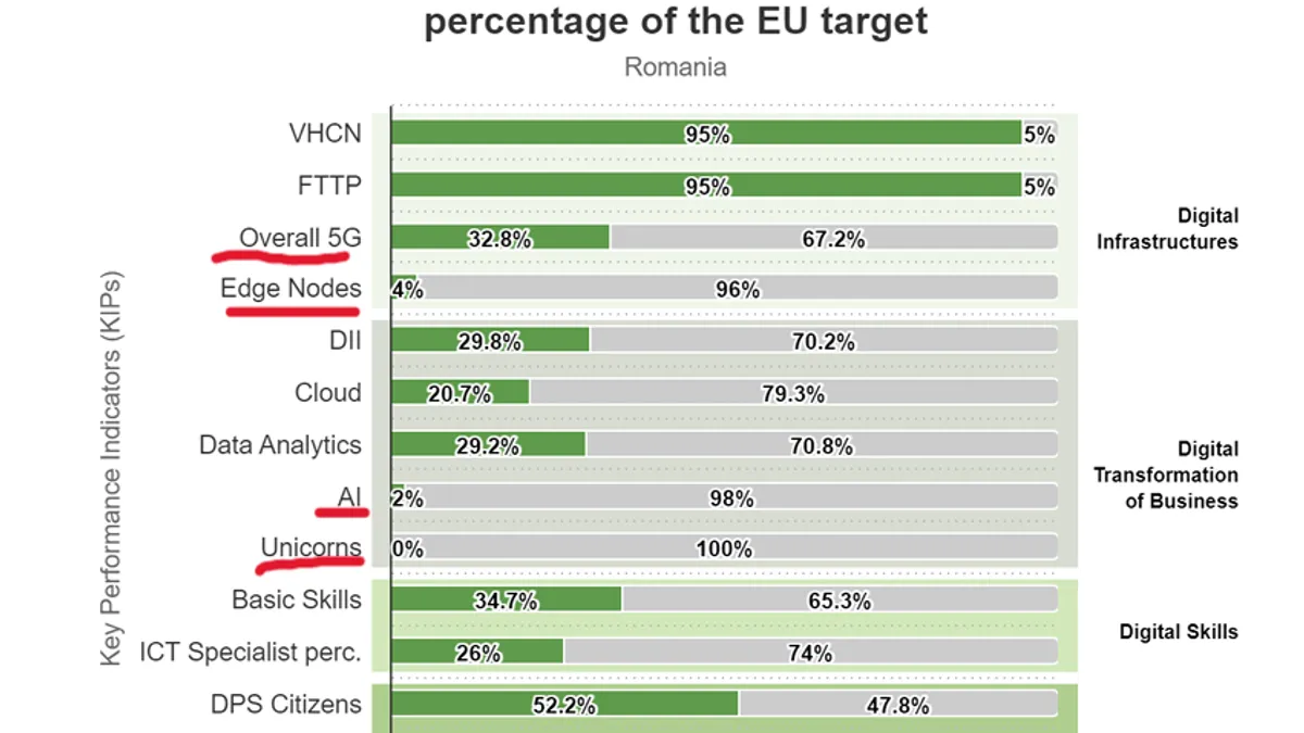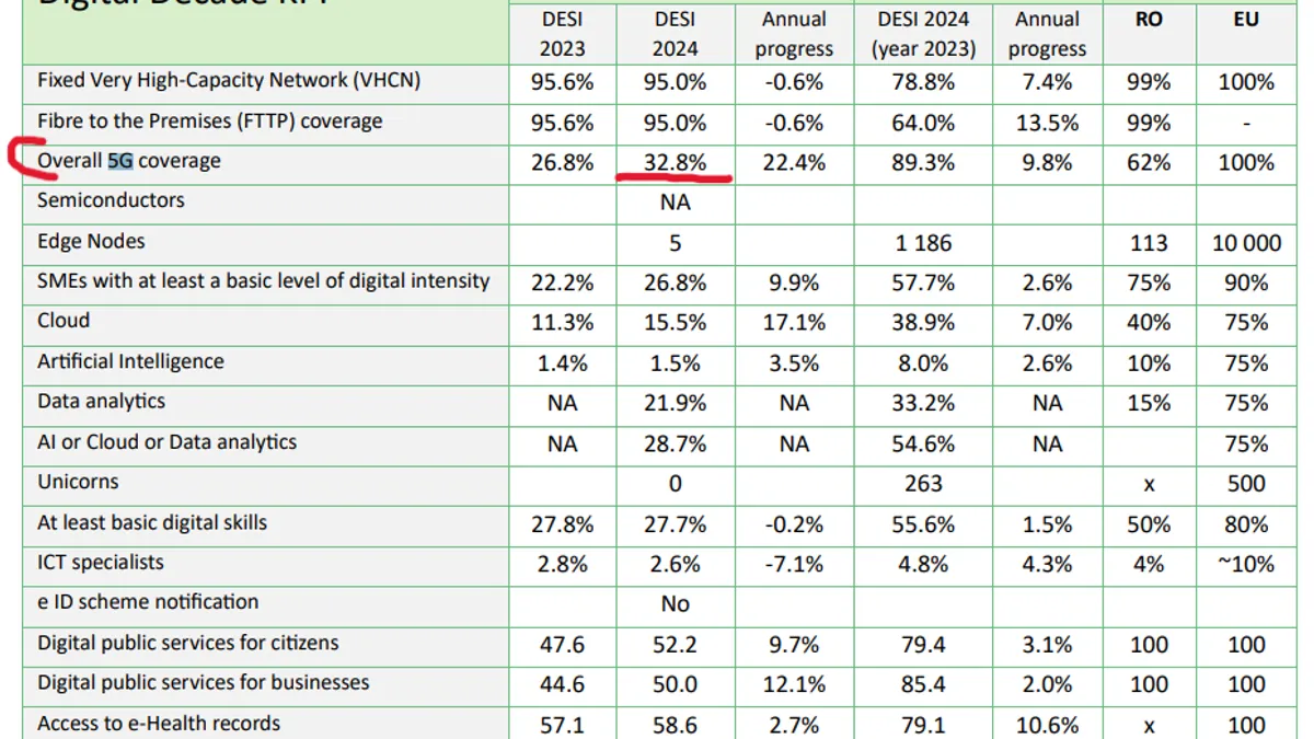 DESI recomandă României „să întreprindă eforturi suplimentare pentru a sprijini un nivel mai ridicat de ambiție pentru obiectivul 5G”.