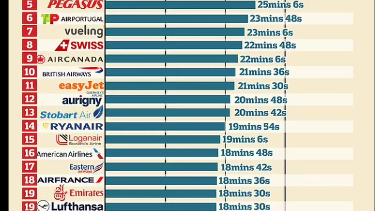 Analiza datelor Autorității Aviației Civile din Marea Britanie a acoperit plecările regulate și charter de pe aeroporturile britanice, efectuate de companiile aeriene care operează peste 2 500 de zboruri. Nu au fost incluse zborurile anulate.