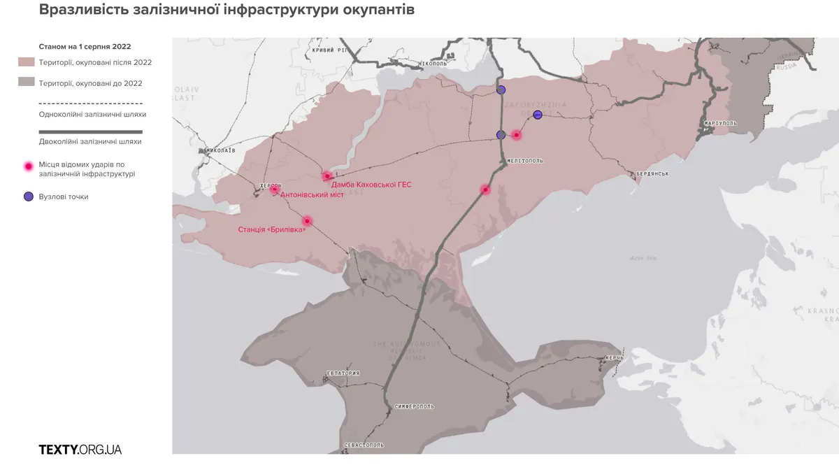 În ceea ce privește alternativele de transport pe cale ferată prin zona Melitopol, o analiză a părții ucrainene, „Care este vulnerabilitatea rețelei feroviare a ocupanților din sud”, arăta, în august, unde sunt punctele sesnibile.