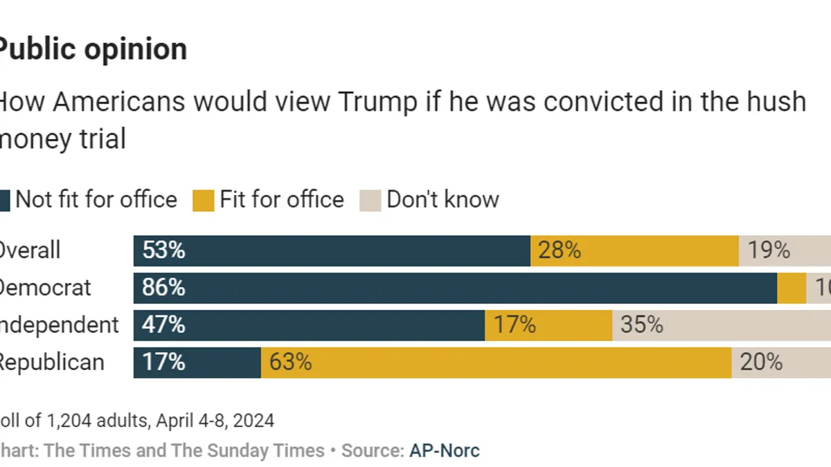 Un sondaj ABC News din această lună arată că 80% dintre susținătorii lui Trump ar rămâne cu siguranță alături de el după condamnare, 16% s-ar răzgândi, iar 4% au spus că și-ar retrage sprijinul.