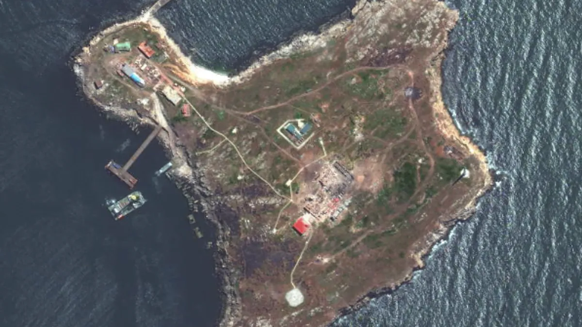 Compania Maxar Technologies a arătat imagini din satelit ale Insulei Şerpilor, rezultatele bombardamentelor şi ale navei Serna, scufundată, potrivit LB.ua.