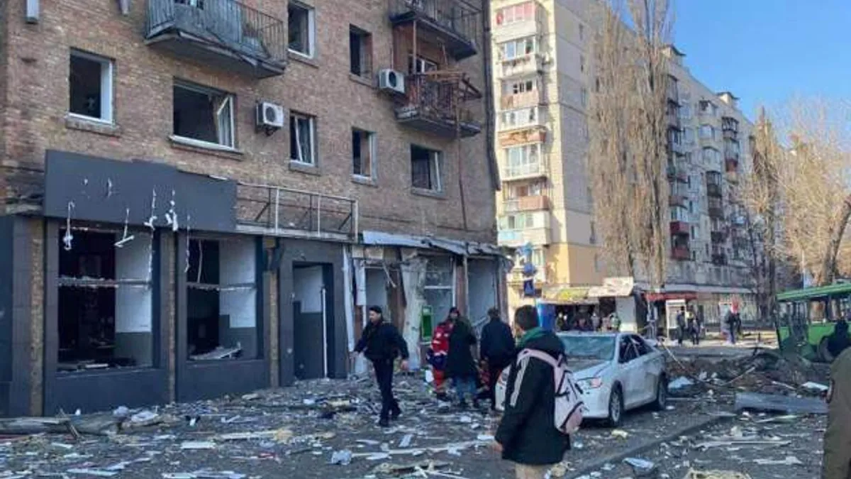 Explozia rachetei a distrus un autobuz și a afectat o clădire rezidențială din cartierul Kurenivka, înainte să fie interceptată de sistemul antiaerian de apărare al Ucrainei.