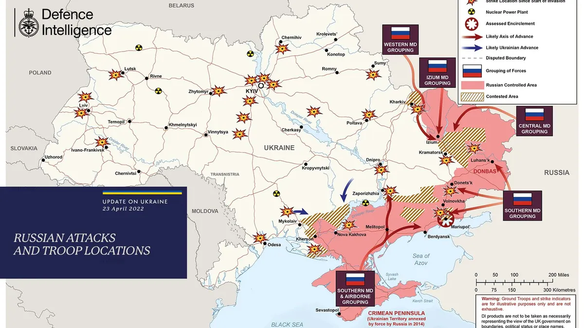 Latest Defence Intelligence update on the situation in Ukraine - 23 April 2022