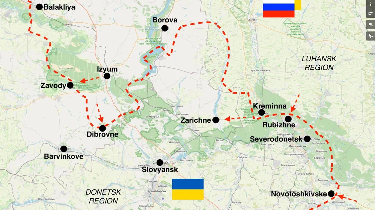 As you can see, the enemy is trying to pinch off a Ukrainian salient with two major strikes from the north and the south. pic.twitter.com/IIgZOrLBwm