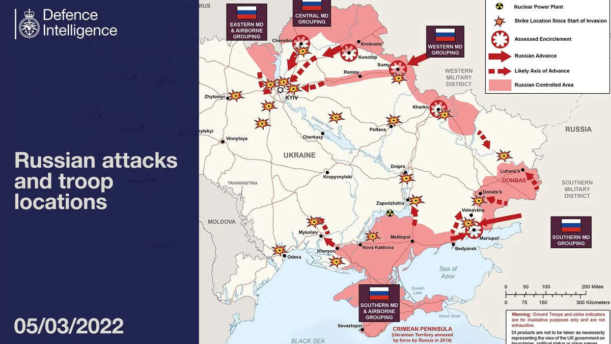 Rusia ocupă, pas cu pas, coastă Mării Negre și se apropie de Odessa. Ministerul britanic al Apărării atrăgea atenția de vineri seara că forțele rusești avansează spre Nikolaiev, un important șantier naval. Însă britanicii arătau că orașul va fi încercuit, fără a se forța ocuparea, scopul rușilor fiind să ajungă la Odessa.
