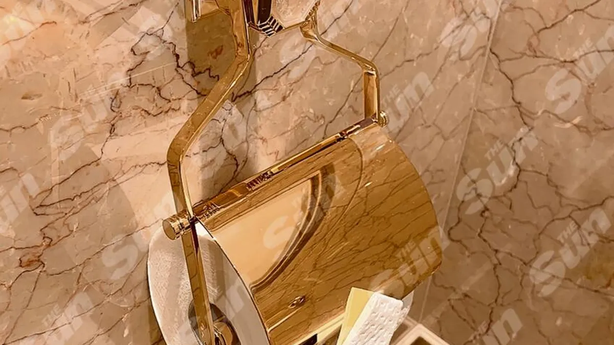 Băile sunt împodobite cu suporturi pentru role de toaletă și robinete din aur”, scrie The Sun.