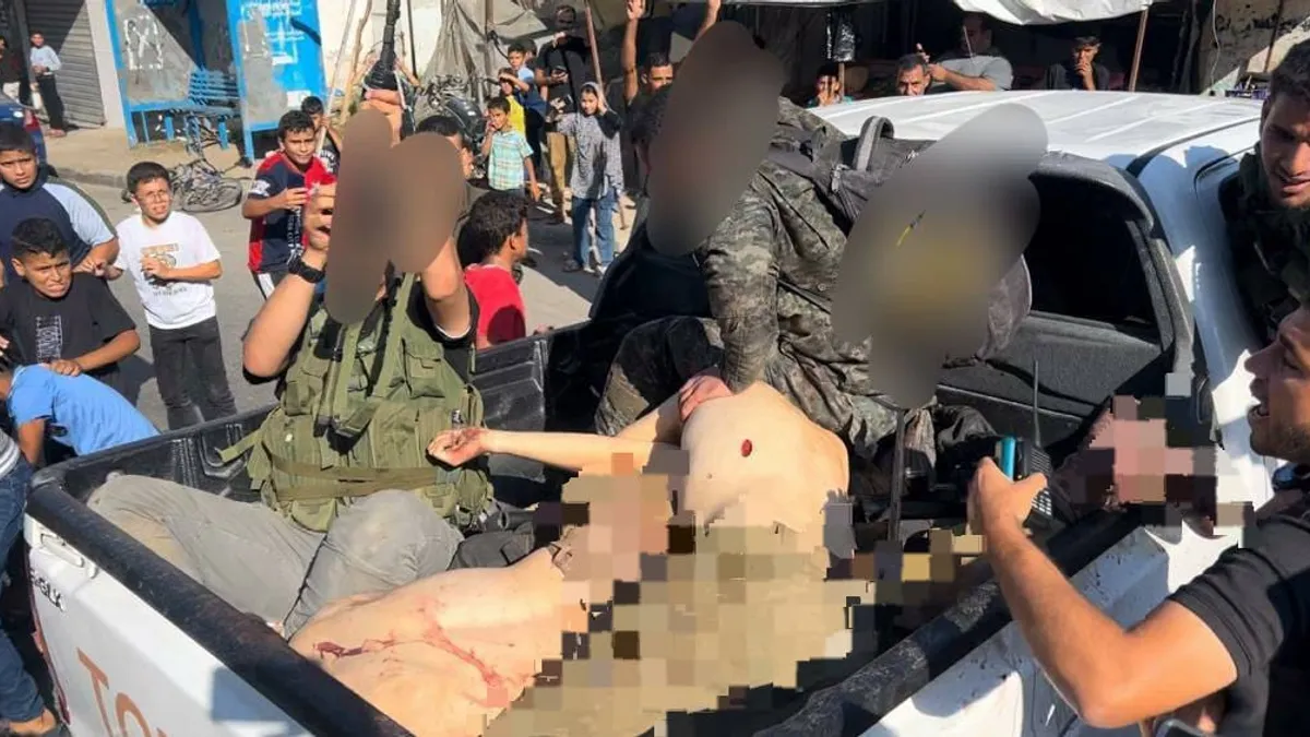 Hamas terrorists cheer as they pass dead bodies, scattered on the ground during their Oct. 7 massacre, and move on to slaughter more victims.