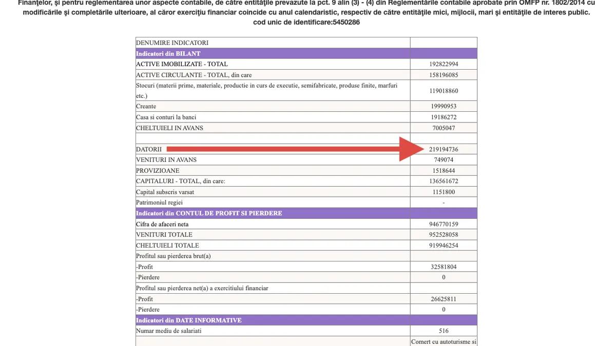 Automobile Bavaria SRL a încheiat anul fiscal 2021 cu un profit, după plata taxelor, de 26,6 milioane de lei, dar și cu datorii de peste 219 milioane de lei, potrivit Ministerului de Finanțe.