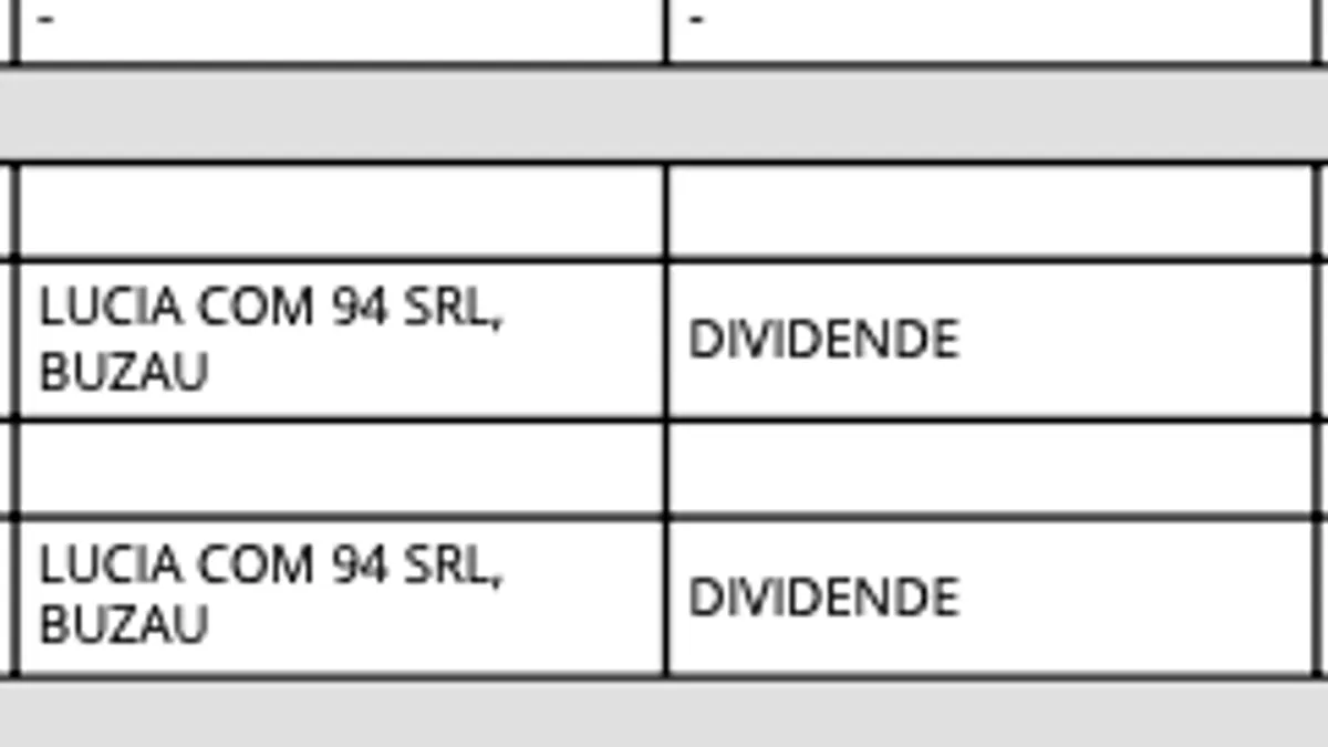 Dividende repartizate soților Ciolacu astfel: 489.400 de lei lui Marcel Ciolacu și 162.000 de lei Roxanei Mihaela Ciolacu.