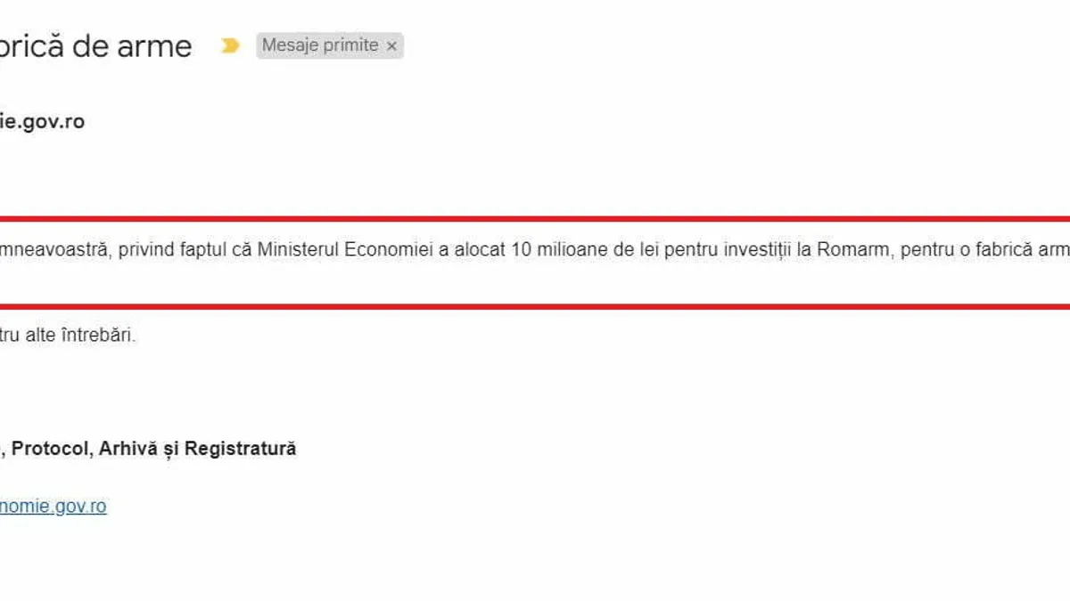 La începutul lunii august a.c., Defapt.ro a solicitat ministrului Florin Spătaru să spună dacă ministerul pe care îl conduce a alocat cele zece milioane de lei către Romarm. Răspunsul a venit prin Biroul de Presă care a transmis următoarele: „referitor la întrebarea dumneavoastră, privind faptul că Ministerul Economiei a alocat 10 milioane de lei pentru investiții la Romarm, pentru o fabrică arme Beretta, vă confirmăm această informație”. Răspunsul a fost confirmat și de Gabriel Țuțu, directorul companiei Romarm.