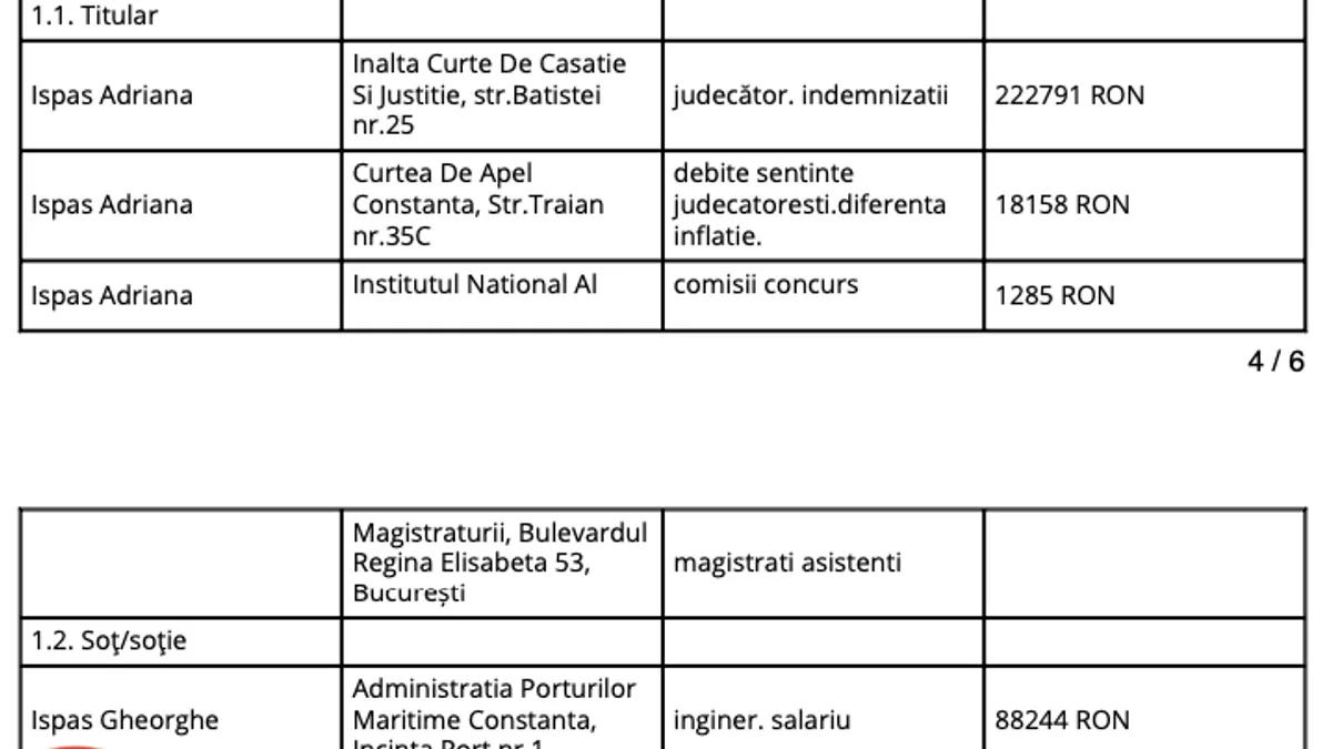 În cea mai recentă declarație de avere depusă de judecătoarea Adriana Ispas, aceasta menționează, în mod ciudat, o sursă de venituri a fiicei sale, Maria Ispas.