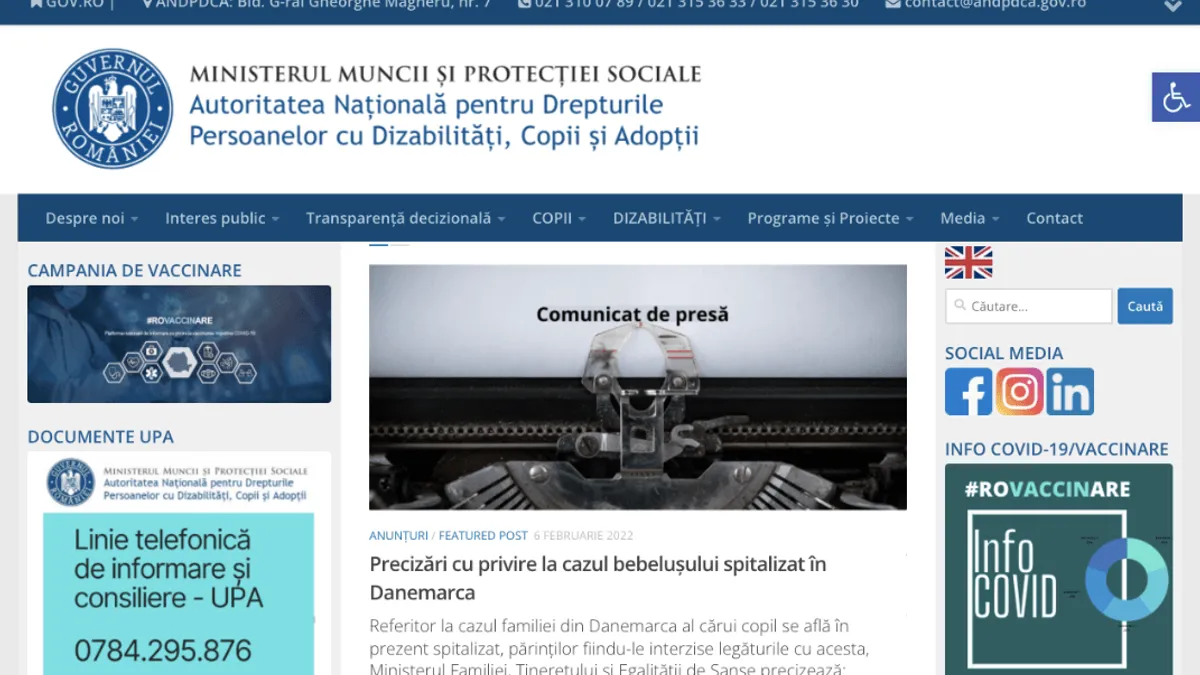 De fapt, instituția care va cere statului danez repatrierea copilului familiei de români este Autoritatea Națională pentru Drepturile Persoanelor cu Dizabilități, Copii și Adopții (ANDPDCA). Până în urmă cu o lună, Autoritatea nici măcar nu se afla în subordinea Ministerului Familiei, Tineretului și Egalității de Șanse (MFTES). Ci în subordinea Ministerului Muncii. De altfel, site-ul Autorității spune în continuare că se subordonează Muncii, nici nu au apucat să schimbe identitatea de internet.