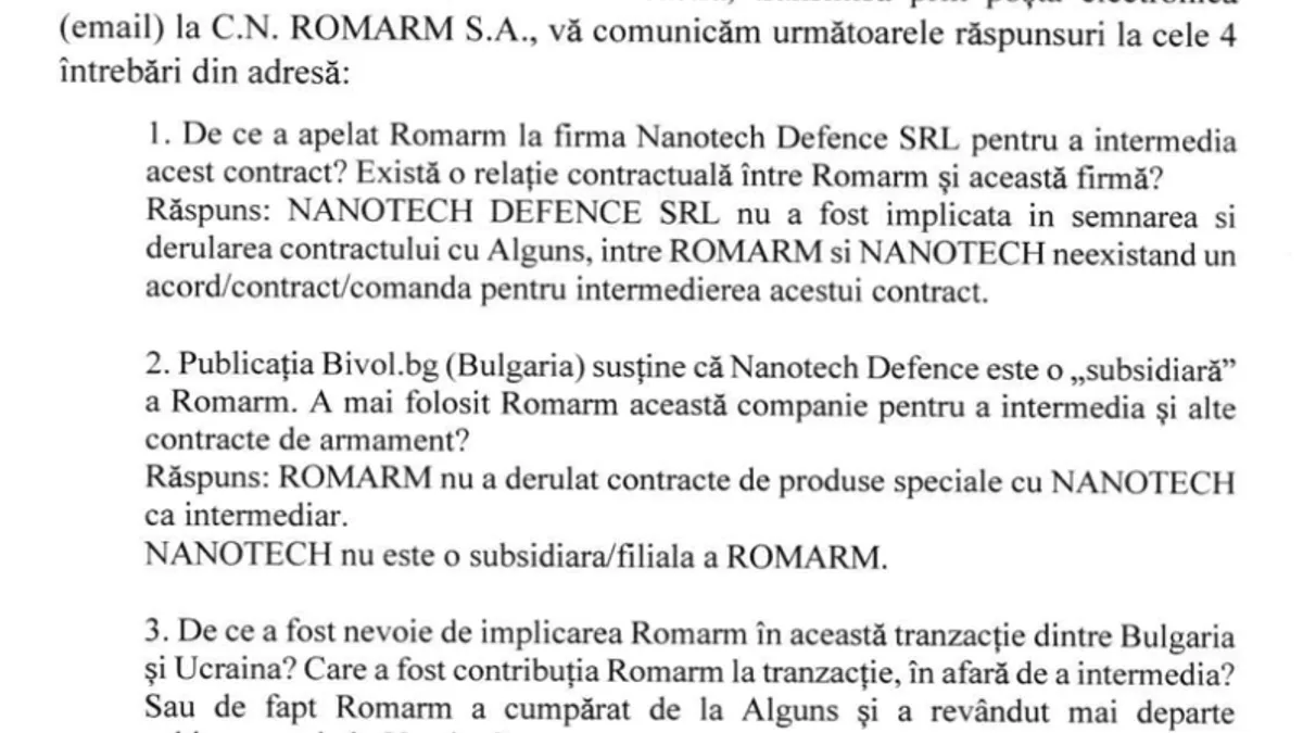 Defapt.ro i-a solicitat lui Gabriel Țuțu, directorul general al Romarm, mai multe informații pe acest subiect. Din răspunsul transmis de Romarm, sub semnătura directorului Gabriel Țuțu, rezultă că acesta nici nu confirmă, nici un infirmă afacerea. Practic, recunoaște indirect că a fost implicat în vânzarea de muniție către Ucraina.