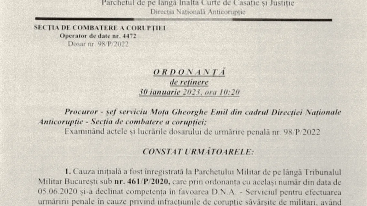 Procurorul de caz Gheorghe Emil Moța susține în Ordonanță că "pentru a da o aparență de legalitate a actelor din procedurile de achiziție reprezentanții UM 024464 au atestat, în mod nereal, prin documente că oferta Helios Dentserv a fost selectată încă din data de 5 aprilie 2020".