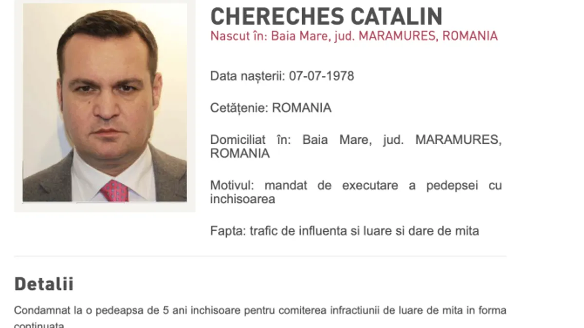 Primarul Cătălin Cherecheș este de negăsit, după ce a fost condamnat la cinci ani de închisoare: el a fost dat în urmărire de Poliția Română, anunțul fiind deja postat pe site-ul instituției.