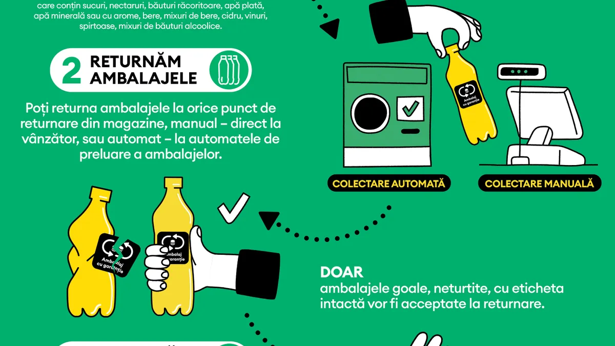 După golirea ambalajului, clienții pot returna ambalajul respectiv la unul dintre punctele de returnare organizate de către comercianți în magazine, practic, în toate magazinele din România