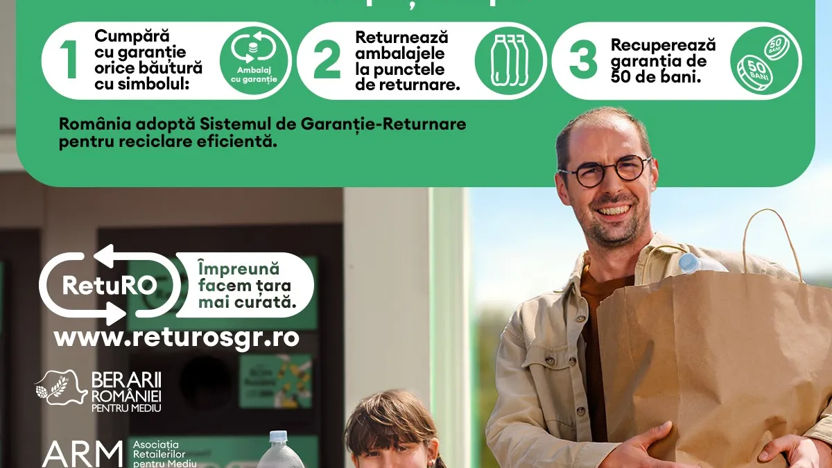 De azi, veți plăti 50 de bani în plus pentru fiecare sticlă cumpărată, însă acestea pot fi returnate, pentru a fi ulterior reciclate. Doar ambalajele care au însemnul RetuRO pot lua parte la schema de plată pentru returnarea la comercianți, însă se estimează că ar fi vorba de circa șapte miliarde de sticle, PET-uri și cutii de aluminiu.
