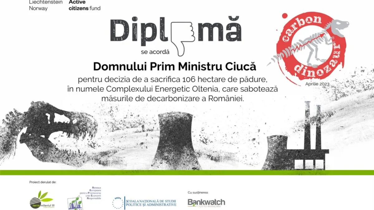 Nicolae Ciucă primește premiul Carbon Dinozaur: Fundația Terra Milleniul III i-a acordat premierului acest premiu, el fiind sancționat pentru deciziile luate în ceea ce privește emisiile de gaze cu efect de seră ale României, scrie green-report.ro.