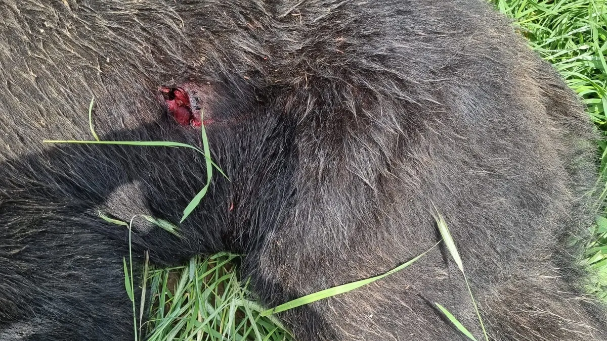 FOTO Incredibilul urs gigant din Tușnadu Nou: lovit în plin de tren, cu organele interne zdrobite, a reușit să se refugieze în sat. A fost împușcat