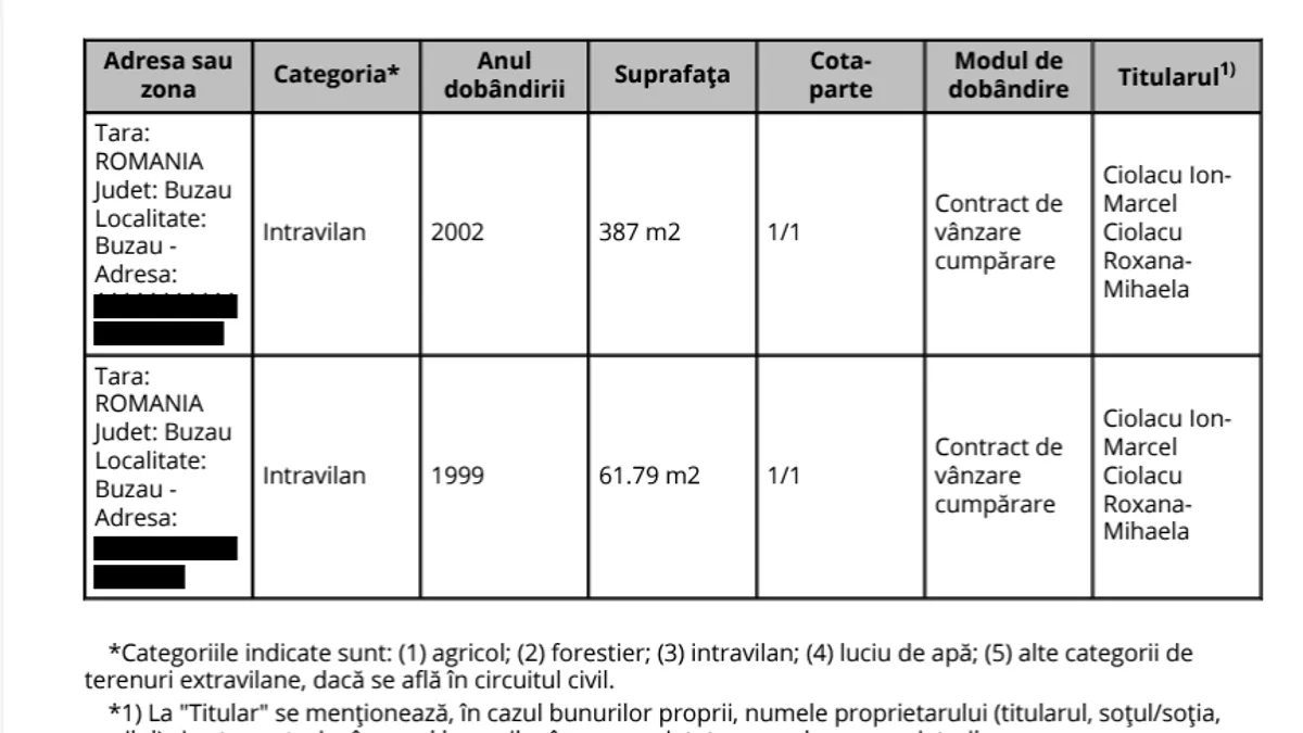 În declarația de avere a lui Ciolacu, postată la ora redactării acestei știri pe site-ul Guvernului, acesta susține că nu deține decât două terenuri în intravilan, la Buzău. În declarație nu apare nici faptul că ar fi primit indemnizație de revoluționar, cum primește, de exemplu, Toni Greblă, președintele Autorității Electorale Permanente.
