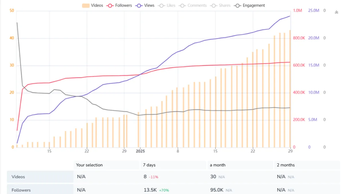 „Conform datelor furnizate de Exolyt.com, între 6 decembrie 2024 și 27 ianuarie 2025, numărul total de vizualizări a video-urilor care utilizează principalele hashtaguri asociate lui Călin Georgescu a crescut cu 1,733 miliarde de vizualizări (de la 10,351 miliarde la 12,045 miliarde)”, mai arată autoarele cercetării.