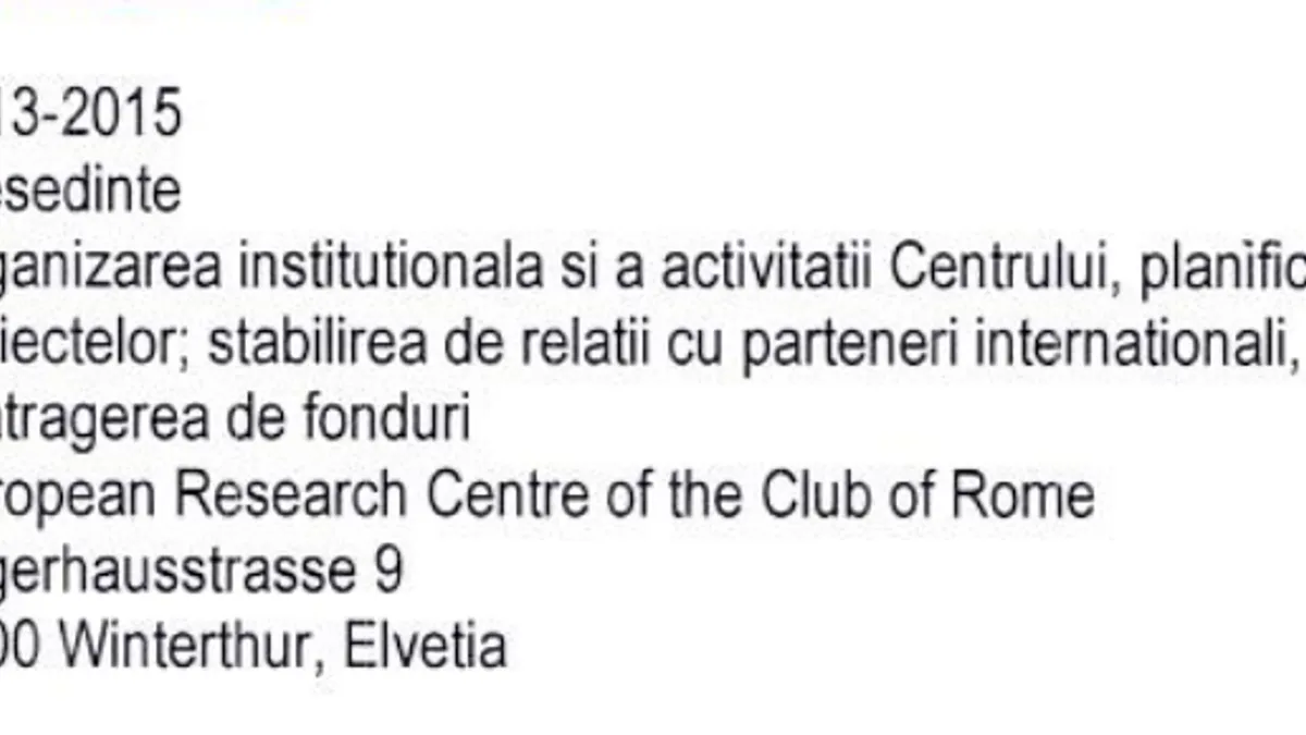 Pe de altă parte, în propriul CV, Călin Georgescu menționează că a fost președinte al European Research Centre of the Club of Rome, dar cu sediul în Winterthur, Elveția, nu Viena, Austria.