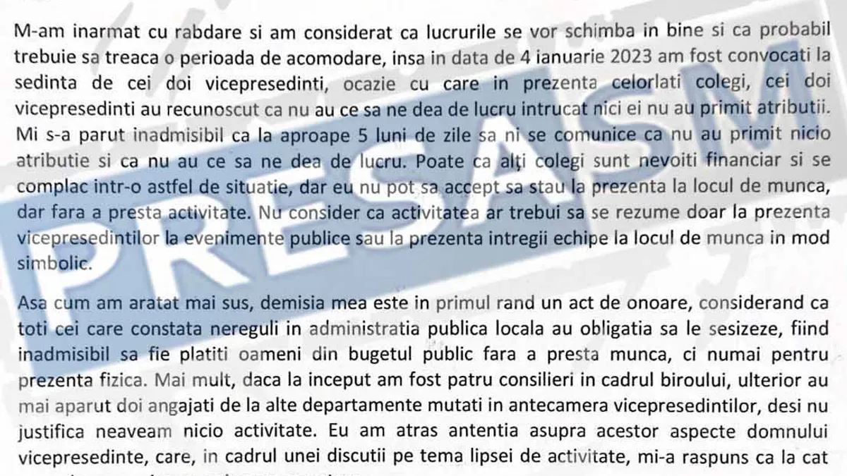 Ce relatează Tișea în demisia sa, potrivit documentului prezentat de presasm.ro: