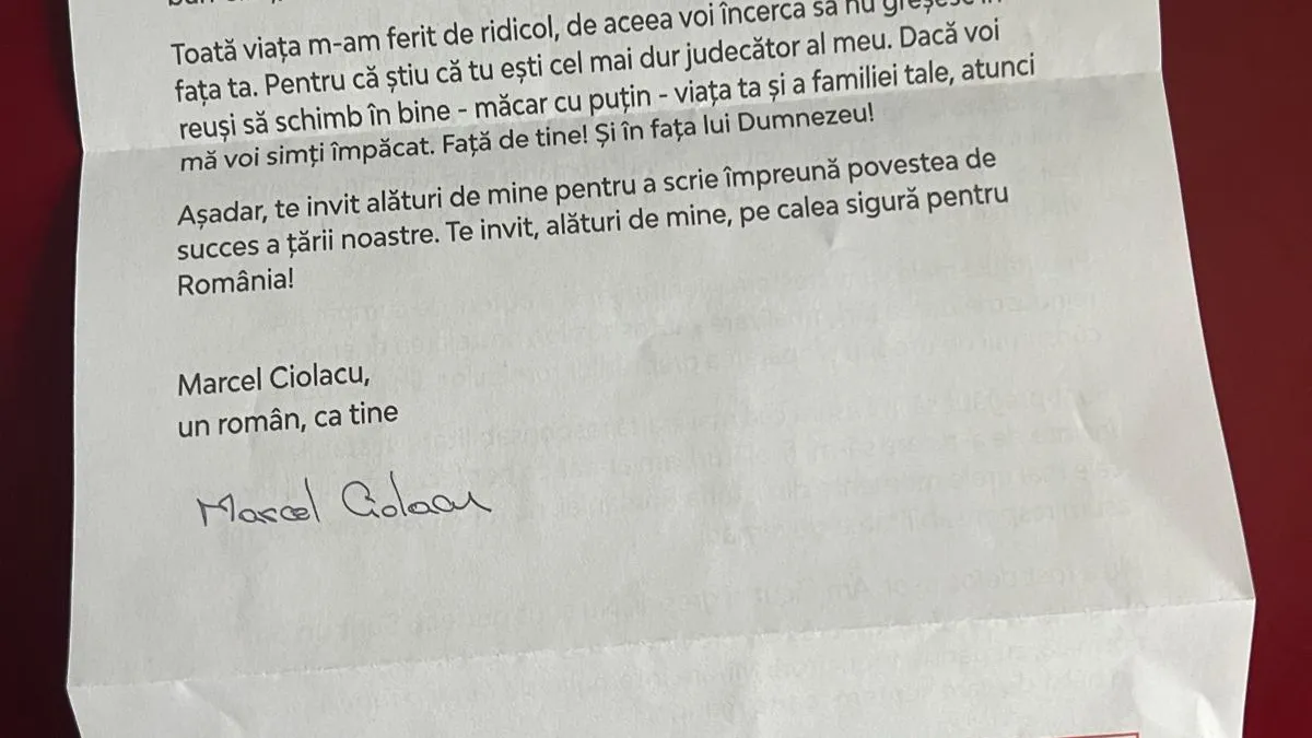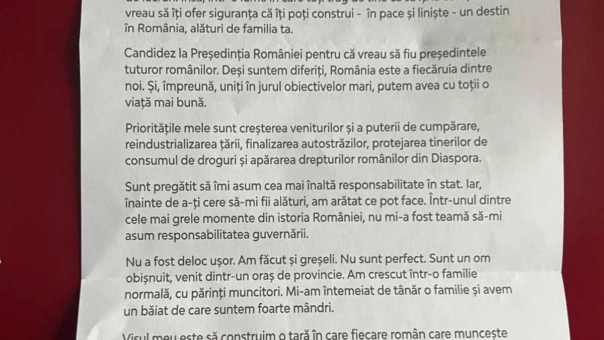 Scrisorica în care Ciolacu își prezintă propria persoană și motivațiile candidaturii a ajuns la milioane de locuințe prin intermediul Poștei Române.
