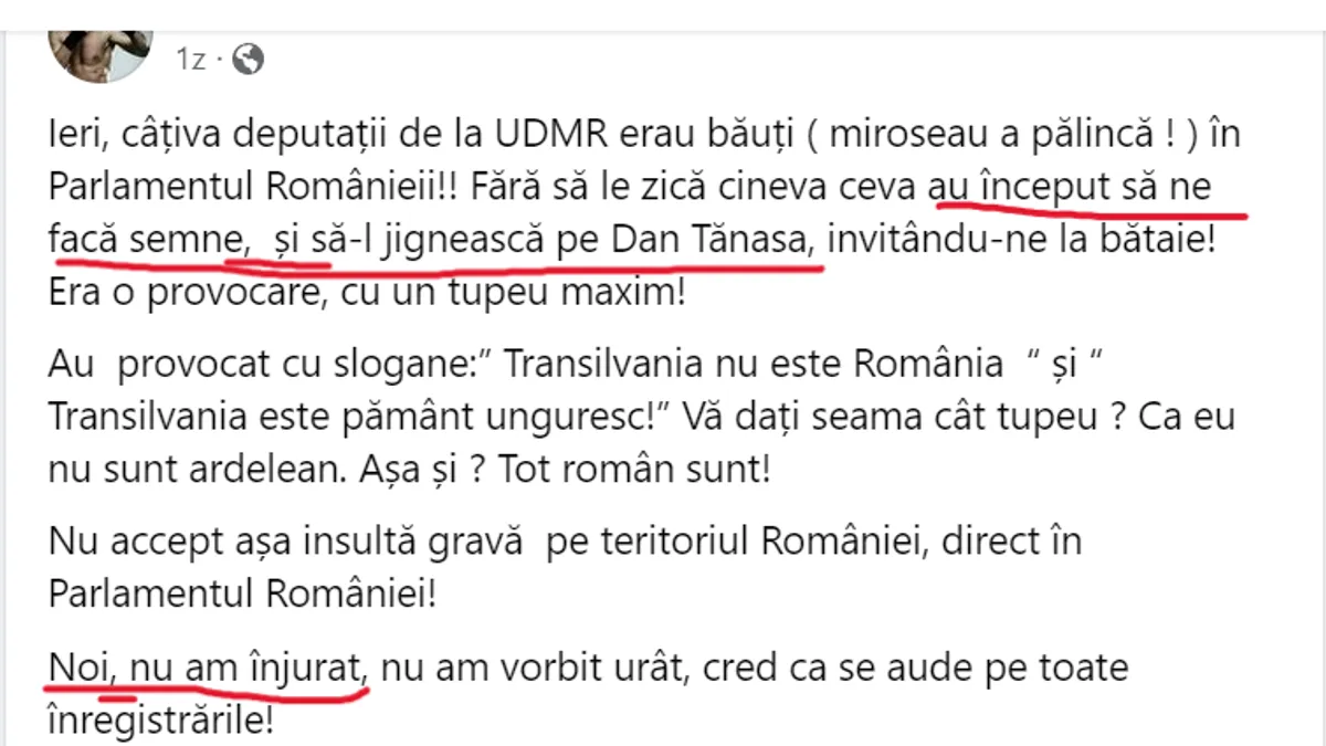 În aceeași postare, el susține că deputații USR au smuls hainele de pe Viorica Dăncilă: „Presa nu a făcut așa mare vâlvă când demnitarii și membrii USR o băteau pe holuri pe Viorica Dăncilă, care avea atunci funcția de Prim-ministru!