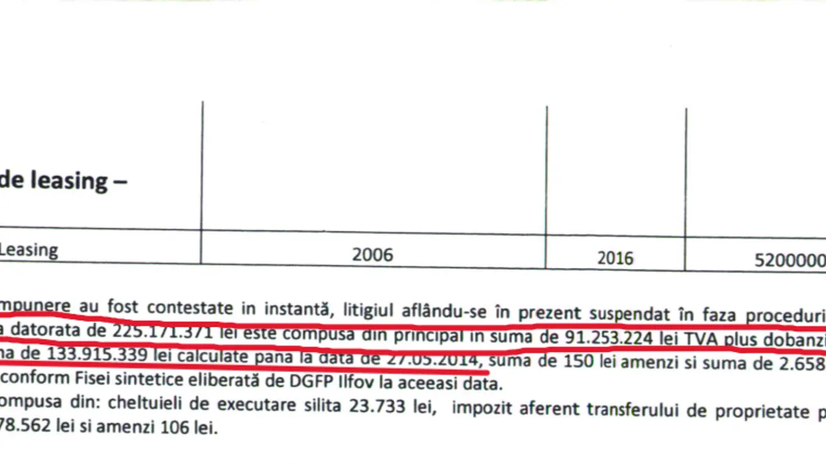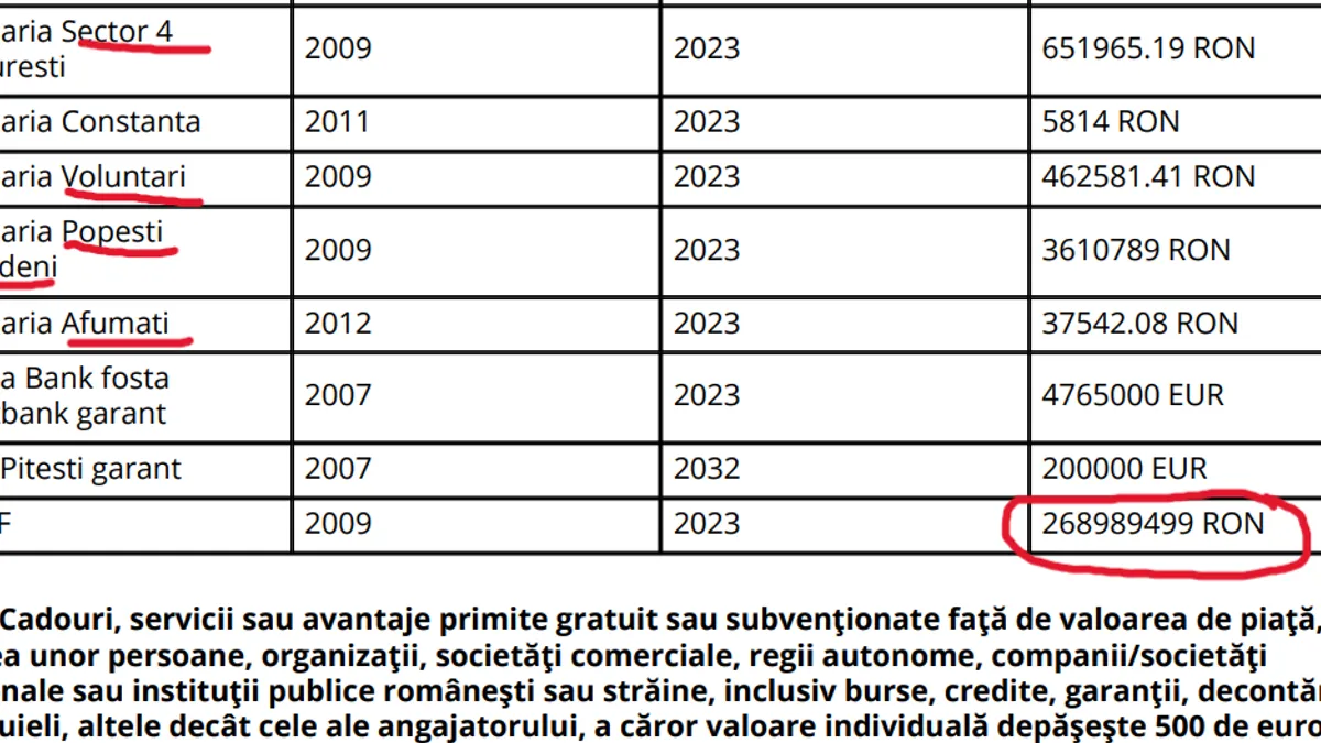 - Datoria către ANAF era de 202 milioane de lei în anul fiscal 2011, potrivit declarației de avere din 2012. Ea a ajuns, în 2022 - potrivit declarației din 2023 - la 268,9 milioane de lei.