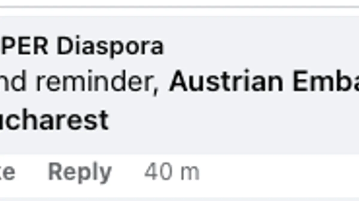 Un comentariu la postarea lui Pîslaru este asumată de contul REPER Diaspora și adresează același "kind reminder" ambasadei Austriei la București.