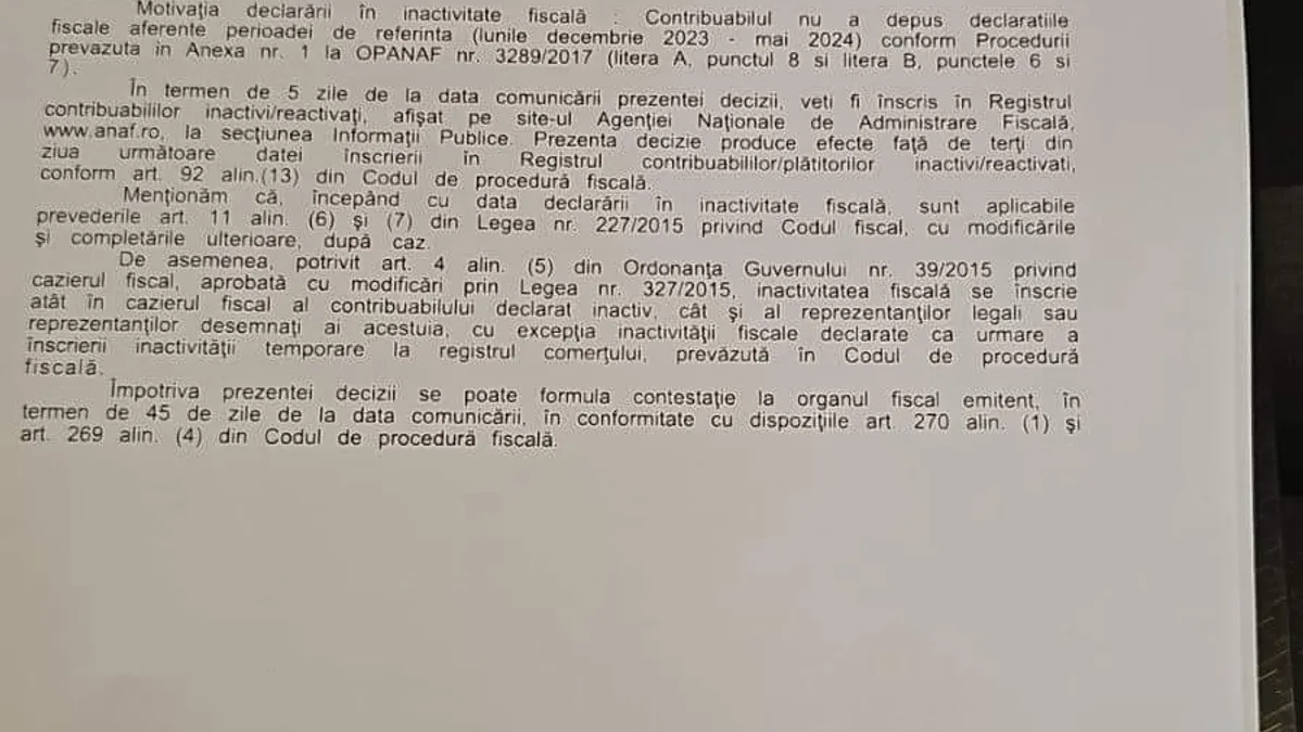 Candidatul SOS România la președinția Consiliului Județean Constanța, Cristian Stancovici, aflat acum în conflict cu Șoșoacă, a publicat pe Facebook și o adresă a ANAF către SOS România, în care se arată că urmează înscrierea în registrul contribuabililor inactivi pentru nedepunerea declarațiilor fiscale timp de șase luni.