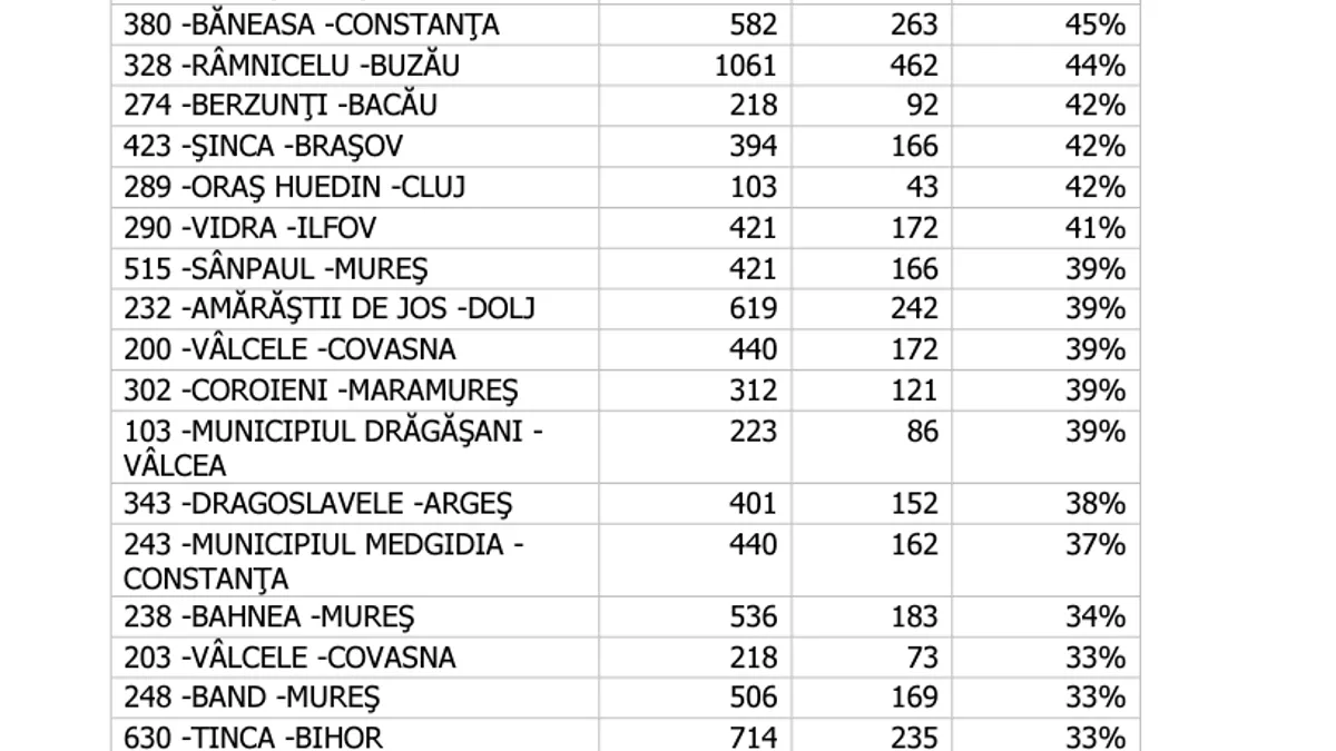 „La nivel de județ, cele mai multe voturi nule au fost înregistrate în Vrancea și Vaslui (6,7%), iar cele mai puțin în Hunedoara, Timiș, Ilfov, Harghita și Cluj (aproximativ 4%).