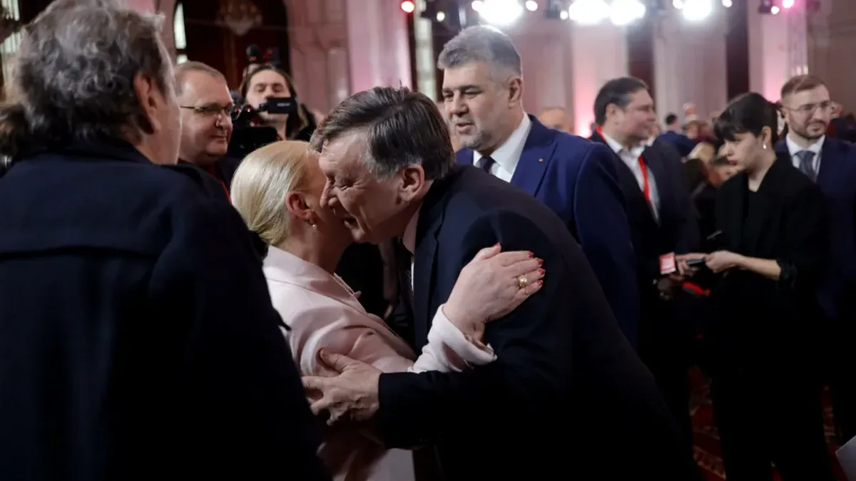 Festivalul pupăturilor la Congresul PSD de validare a candidaturii lui Crin Antonescu: „Bine ai venit Crin, sper că ți-a fost dor de PSD!”, i-a urat liderul social-democrat Marcel Ciolacu. Candidatura lui Crin Antonescu la alegerile prezidenţiale a fost validată, duminică, prin vot, în cadrul Congresului extraordinar al PSD. Din 5.928 de reprezentanţi convocaţi, au fost prezenţi 5.516 și au fost înregistrate 5.484 de voturi ”da”, 18 voturi negative şi 14 abţineri.