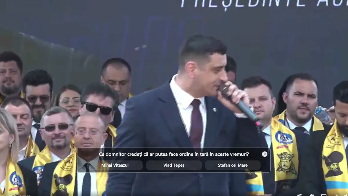 În timpul transmisiei live, pe pagina de Facebook a lui Simion a fost ințiat un sondaj cu întrebarea „Ce domnitor credeţi că ar putea face ordine în ţară în aceste vremuri?”, opţiunile de răspuns fiind Mihai Viteazul, Vlad Ţepeş şi Ştefan cel Mare. Însă, surprinzător, a câștigat Mihai Viteazul.