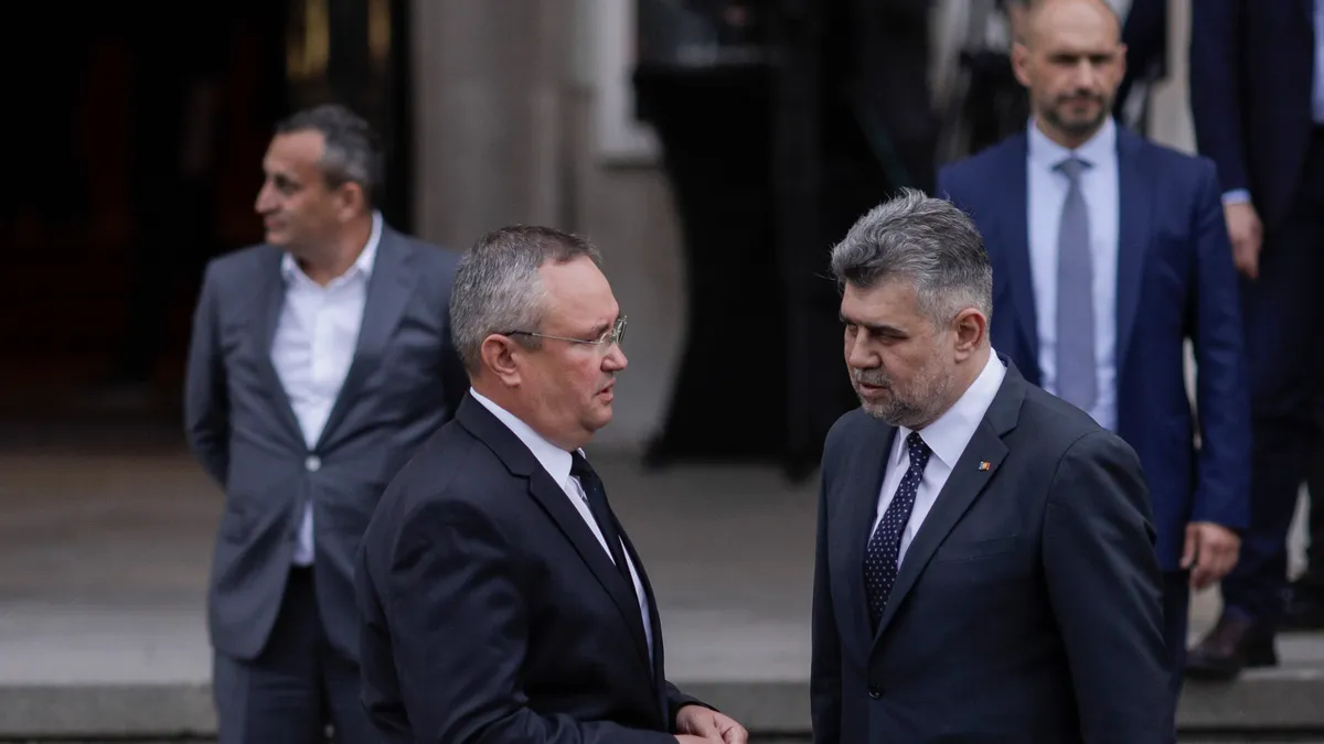 Premierul actual, Nicolae Ciucă (PNL) și posibilul său succesor, Marcel Ciolacu (PSD), s-au aflat la o reuniune a Uniunii Naționale a Consiliilor Județene (UNCJR), organizație care a împlinit 30 de ani.