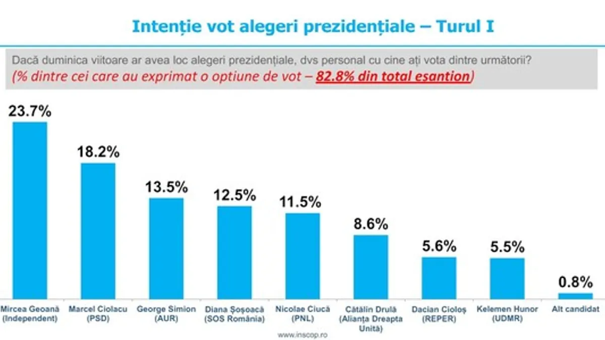 Care este situația principalilor competitori la președinția Româniai, potrivit datelor INSCOP: