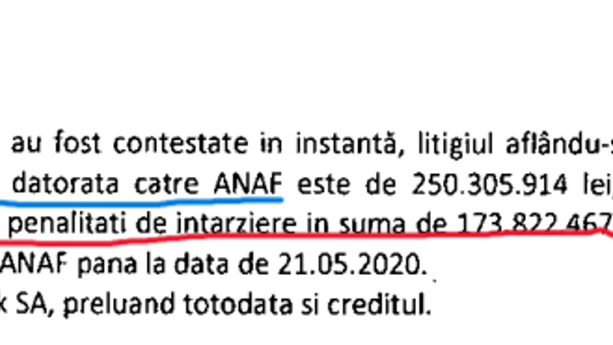 În 2020, în declarația de avere, el a arătat și care este suma principală datorată ANAF și cât sunt dobânzile și penalitățile de întîrziere: „Suma pretins datorată către ANAF este de 250.305.914 lei, fiind compusă din principal în suma de 76.483.447 debit TVA, plus dobânzi și penalități de întârziere în suma de 173.822.467 lei. Între timp, cu penalități și dobânzi, datoria sa la ANAF a crescut cu circa 29 de milioane de lei.