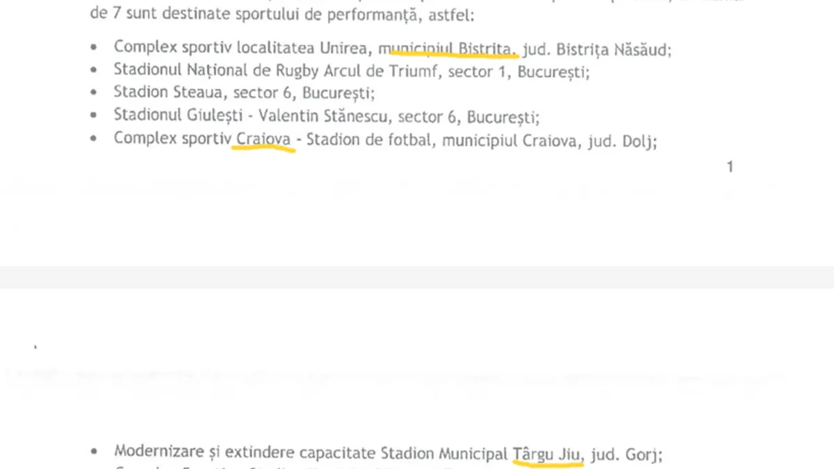 Din 2015 în 2024, statul a pompat aproape 1,7 miliarde de lei în 67 de baze sportive, dintre care șapte ar fi dedicate sportului de performanță. Însă toate cele șapte obiective sunt stadioane, din care unul în Turnu Măgurele, unul în Târgu Jiu și altul în Craiova.