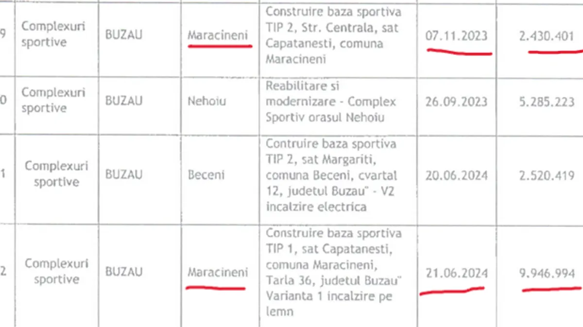 În 2023 și 2024, de când Marcel Ciolacu este la putere, CNI a finalizat în județul Buzău complexuri sportive în valoare de peste 20 de milioane de lei. Una din bazele sportive din satul Capatanesti, comuna Mărăcineni, Buzău, finalizată în 2024, a costat zece milioane de lei.