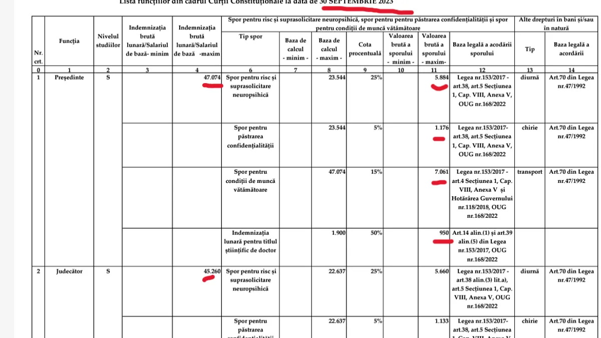 - Secretarul general al CCR: brut, 26.200 de lei, lunar, în septembrie 2022. Însă, în septembrie 2023, avea aceleași venituriu salariale.