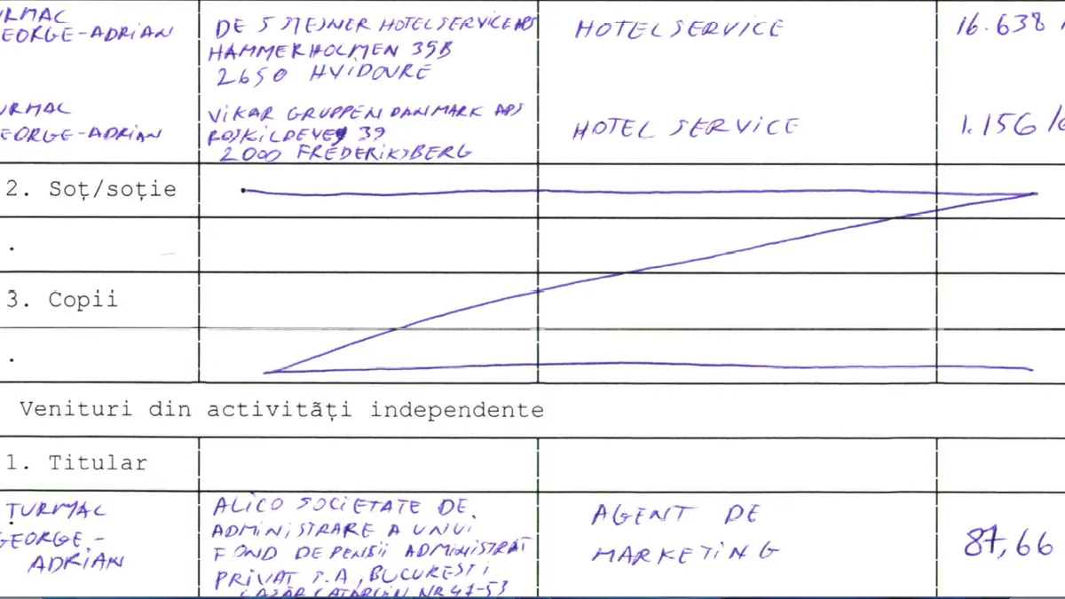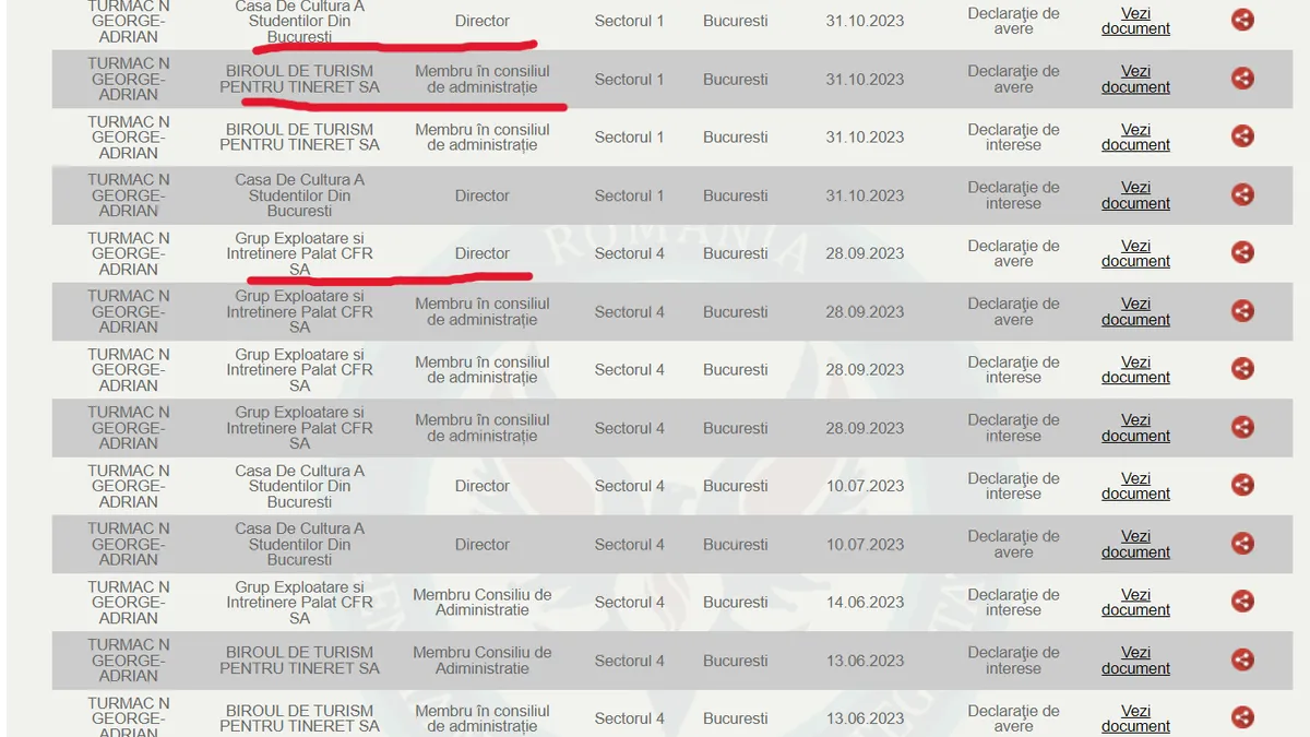 Portretul sinecuristului pesedist, promovat în consiliul general al Capitalei: de la angajat prost plătit al unui hotel din Germania la șefia companiilor CFR. Turmac George Adrian era, în 2011, angajat al unui hotel din Germania, care l-a plătit cu ridicola sumă de 17.000 lei, net, pe an. În plus, a mai câștigat 87 de lei ca agent de marketing al unui fond de pensii. Nu deținea case, terenuri sau mașini.