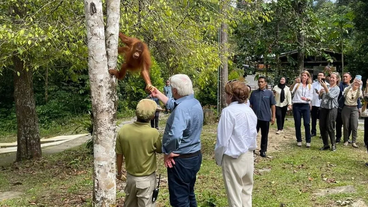 Președintele Germaniei, Frank-Walter Steinmeier, și-a întrerupt, brusc, discursul, ca să nu-l streseze pe Edwin, orangutanul-vedetă din cadrul Semenggoh Wildlife Centre, o rezervaţie naturală amenajată în partea malaeziană a insulei Borneo.
