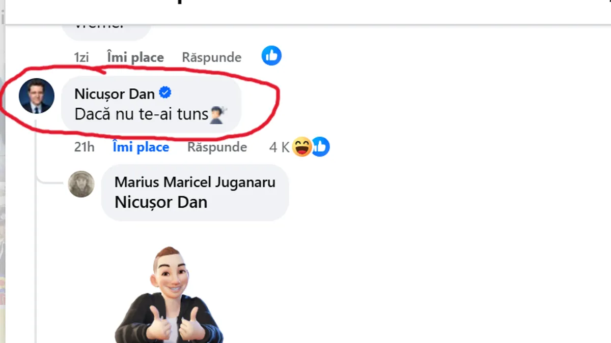 Însă a răspuns și primarul general al Capitalei: „Dacă nu te-ai tuns”. Este posibil ca Nicușor Dan să fi ironizat o problemă din anii regimului comunist, când tinerii care aveau părul lung - considerat a fi o expresie a modei decadente, occidentale - erau opriți de miliție și trimiși să se tundă sau amenințați că vor fi tunși „la zero”, cum erau tunși doar deținuții.