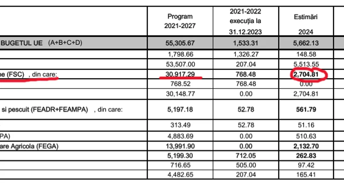 România a atras până acum zero euro din fondurile structurale și de coeziune pentru perioada 2021-2027. Ministerul de Finanțe și-a planificat să cheltuie 2,7 miliarde euro în 2024