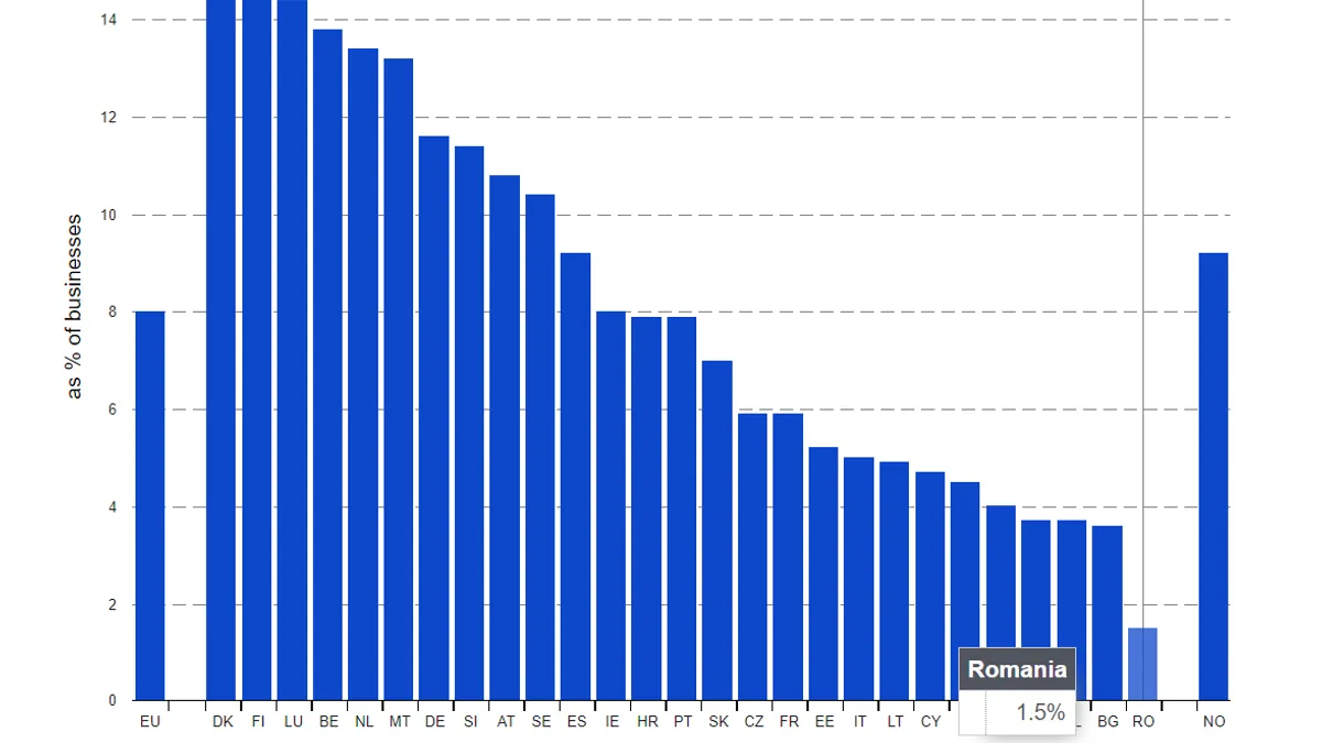 România era pe penultimul loc în UE în ceea ce privește numărul specialiștilor ICT (tehnologii ale informației și comunicațiilor) angajați în companii (doar 2,6%) și pe penultimul loc în ceea ce privește utilizarea AI (inteligența artificială). Doar 1,5% dintre afacerile din România foloseau AI, față de 15% în Danemarca, aflată pe locul I.